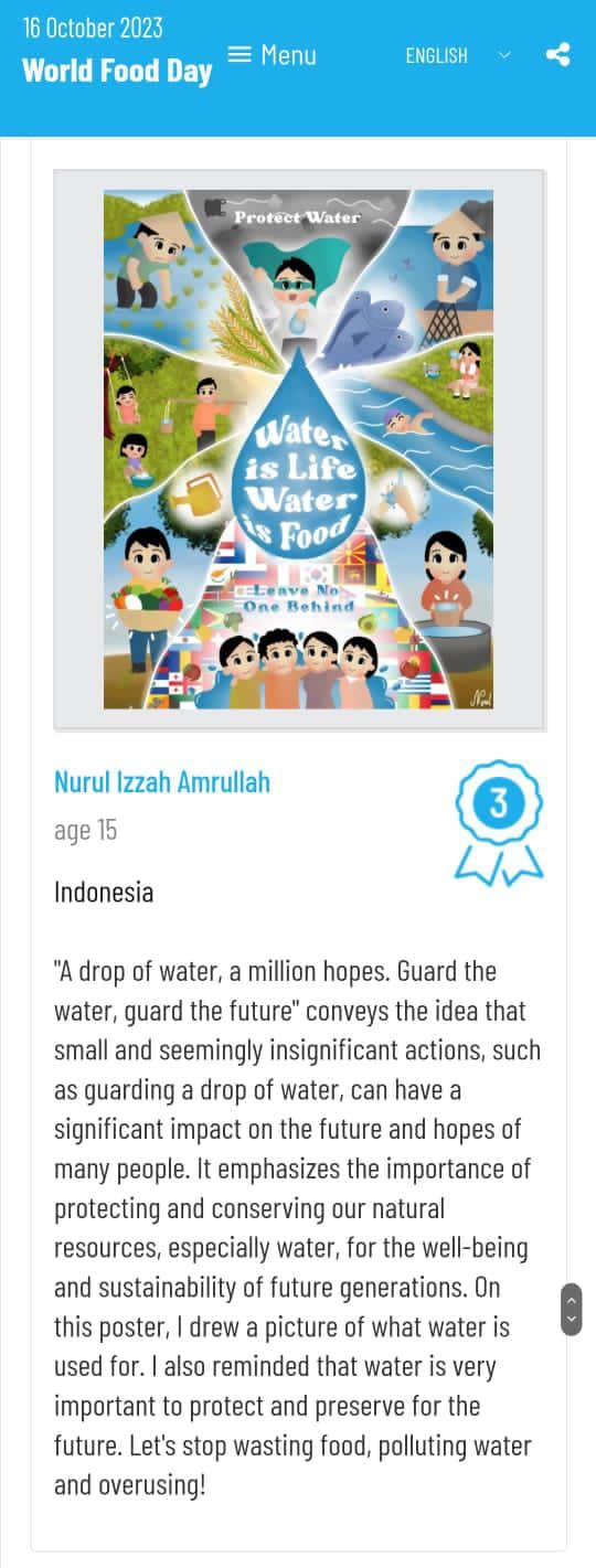 poster Nurul Izzah XE SMAN 2 Sampit, mendapat posisi ke 3 tebaik di ajang internasional #WorldFoodDay Poster Contest Competition oleh Food and Agricul...
